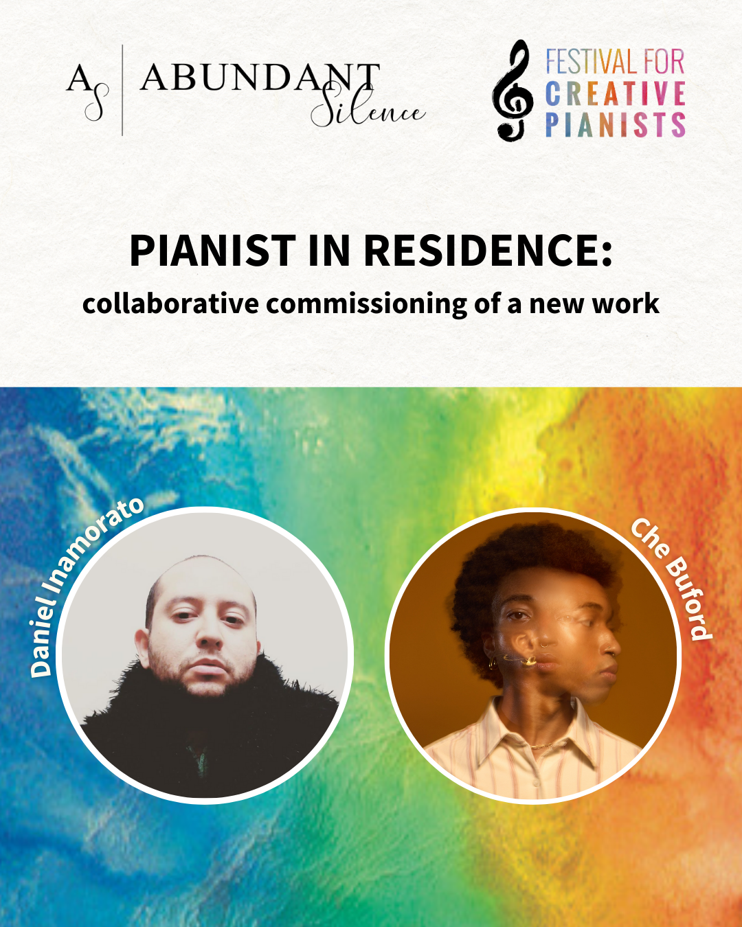 The final component of his residency is the collaborative commissioning of a new work from an Abundant Silence composer, and we’re thrilled that Daniel is working with the exceptionally talented Che Buford.